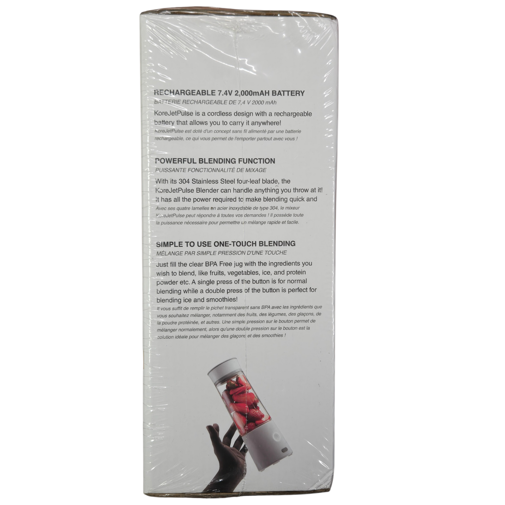 NEW The KORE JetPulse Cordless Portable Smoothie Blender is designed for convenience and efficiency. This rechargeable unit allows for easy blending without the constraints of power cords, ideal for on-the-go users. The portable design enhances versatility, catering to those seeking healthy beverage options anywhere.